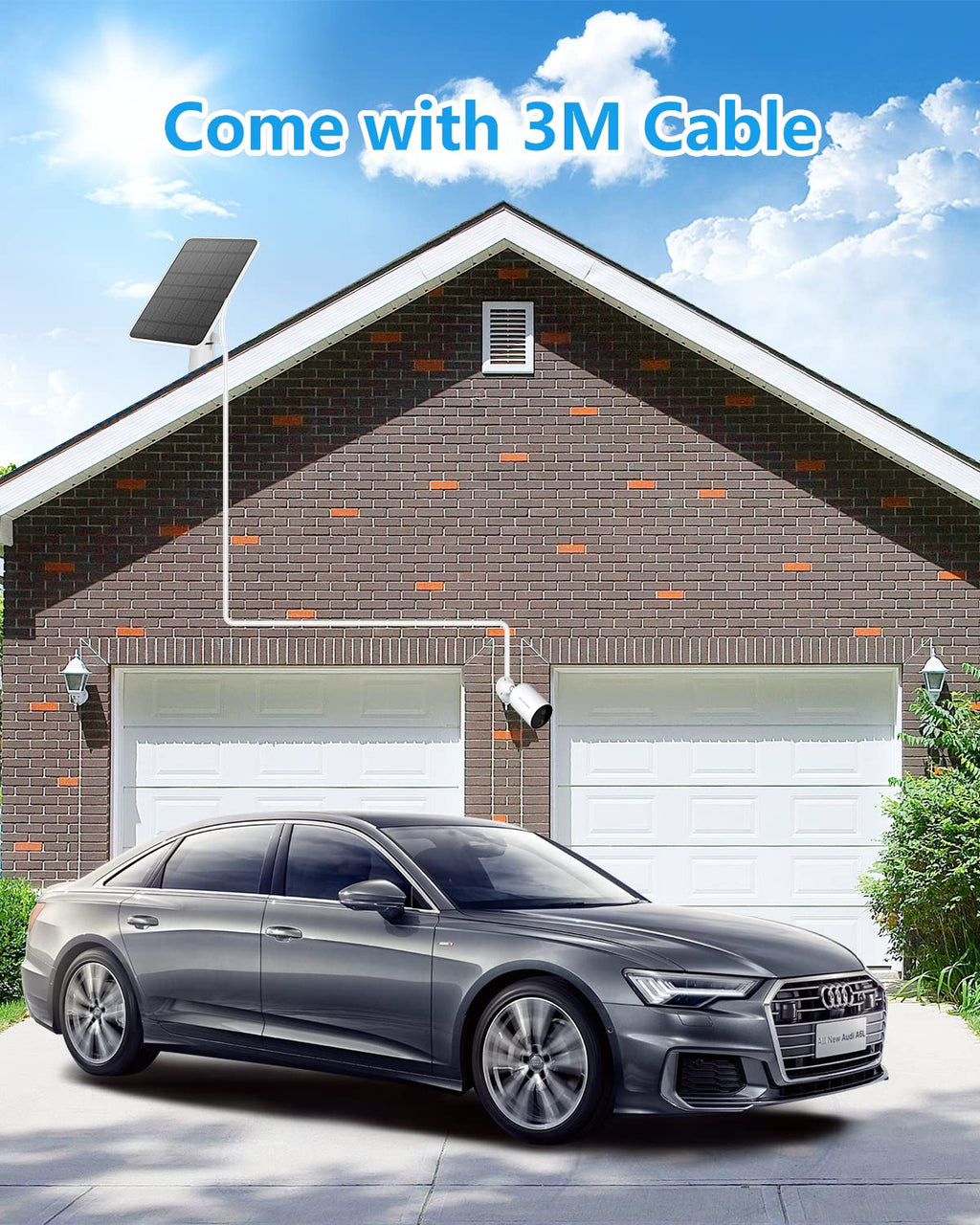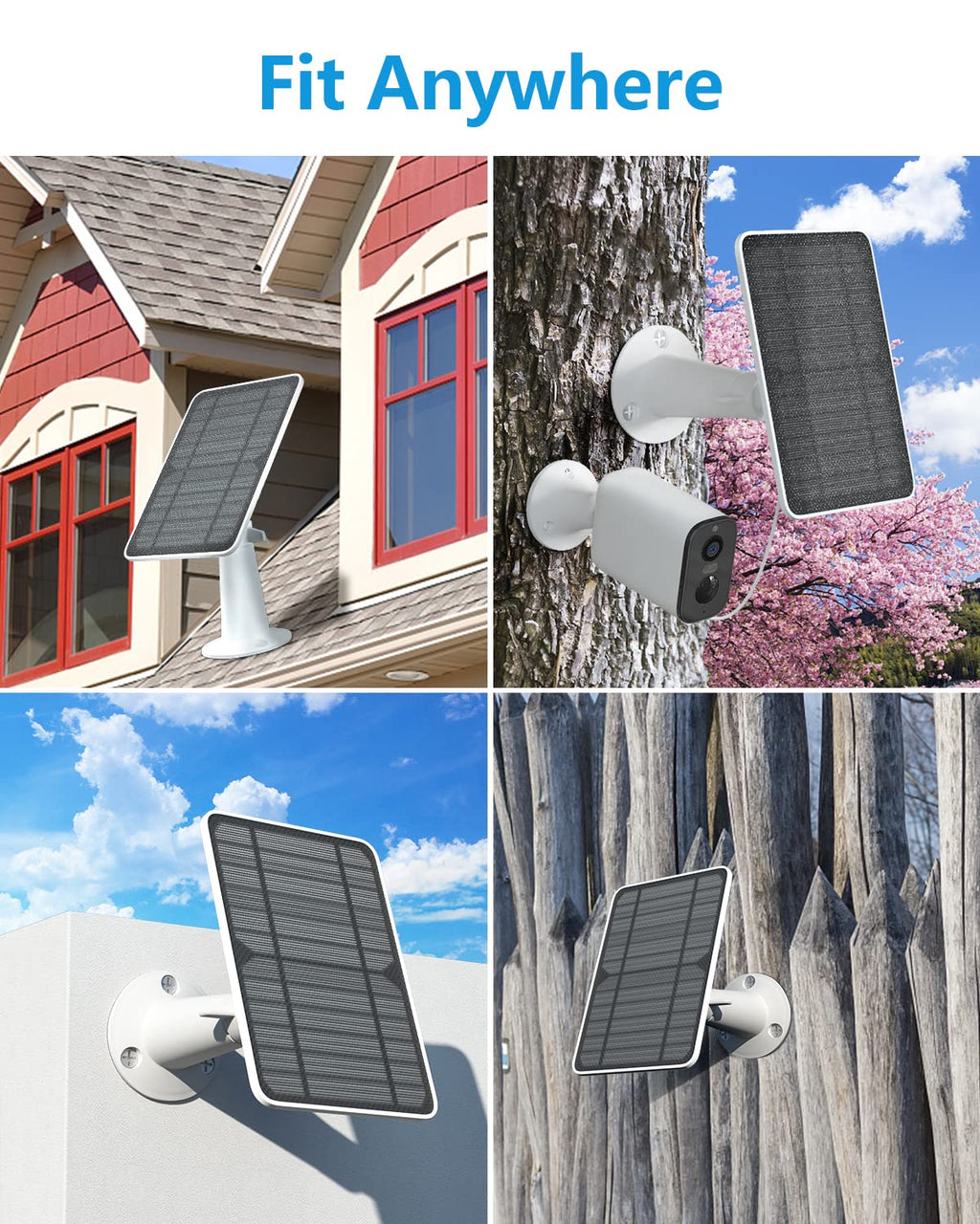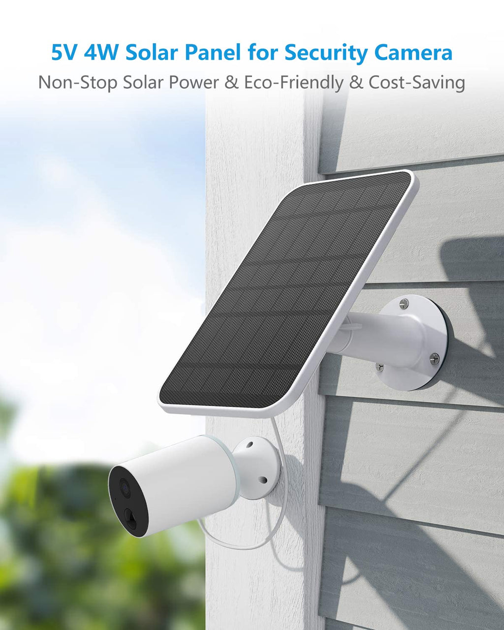 • 【Continuous Solar Power with 5W Power Output】This 5V solar panel offers 5W(Max) power output, which is more efficient and faster than ordinary solar panels. Do not worry that no power for security cameras while you were away from home. Whats'more, free your hands and save time without frequently charging your surveillance cameras.