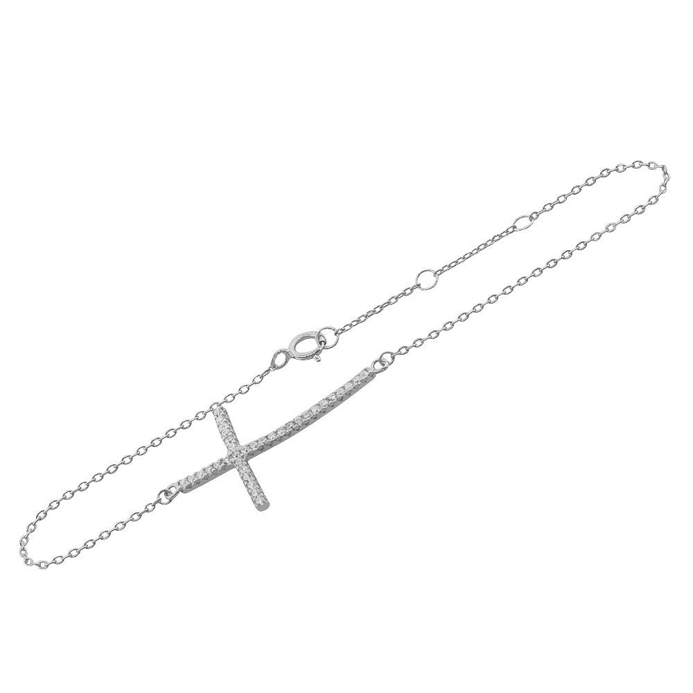 925 Sterling Silver Sideways White CZ Cross Link Chain Bracelet