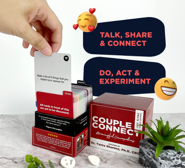 The Couple Connect Card Game by Life Sutra® offers a fun and effective way to rekindle the spark. We are offering a card game that lets you carve time out of your busy schedule to enjoy fun moments and explore important life areas with your partner. You get to learn more about yourself and your partner, strengthening your bond in the process.