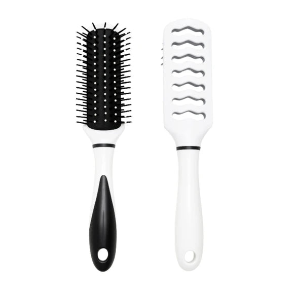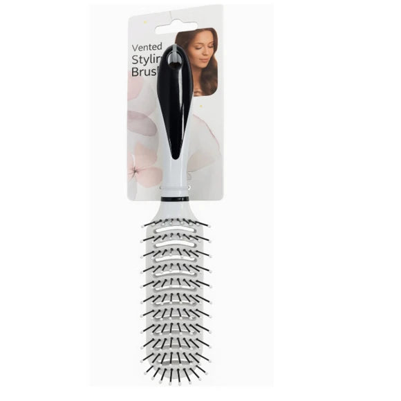 The Classic White and Black Skeleton Paddle Hair Brush is designed for efficient styling, detangling, and grooming. Measuring 9.25" in length, it features a spacious bristle area measuring 2" x 4" for optimal coverage. The skeleton design allows for enhanced airflow, making it perfect for blow-drying and quick styling while reducing heat buildup. The flexible bristles gently glide through hair to detangle knots and smooth strands without causing breakage. Ideal for all hair types, this lightweight brush is perfect for everyday use, providing both function and style in one sleek design. Its ergonomic handle ensures a comfortable grip, making styling effortless. Whether used at home or on the go, this versatile brush is a must-have haircare accessory. Comes packaged to a tie card.,Classic White and Black Skeleton Paddle Hair Brush,