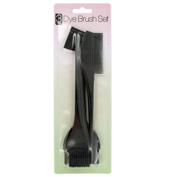 Create salon results at home with this 3-piece Hair Color Application Brush Set featuring durable plastic brushes in an assortment of sizes and styles. Brushes are designed to apply hair color and distribute it evenly. Tapered handles have pointed tips for sectioning hair. Set includes 1 - 2.25" wide brush, 1 - 1.5" wide brush and 1 - 1.25" wide brush/2.5" wide comb combo tool. Comes packaged in a blister pack.,Hair Color Application Brush Set,