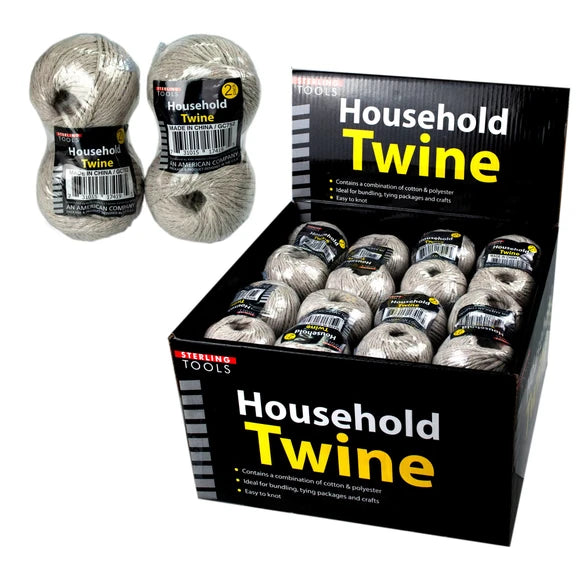 Perfect for using in garages, for gardening and great to have on hand for emergency fixes, this Household Twine features durable cotton/polyester blend twine on wrapped balls. There are 2 balls of twine per shrink wrapped package and 24 packages per countertop display.,Household Twine Countertop Display,Hilo Grueso 2Pzas