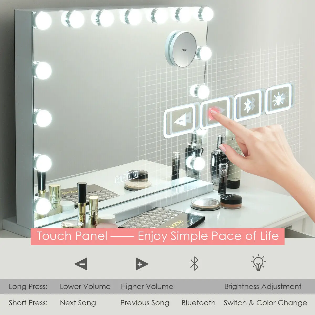 Hollywood Vanity Lighted Mirror Touch Control Magnification Bluetooth Speaker