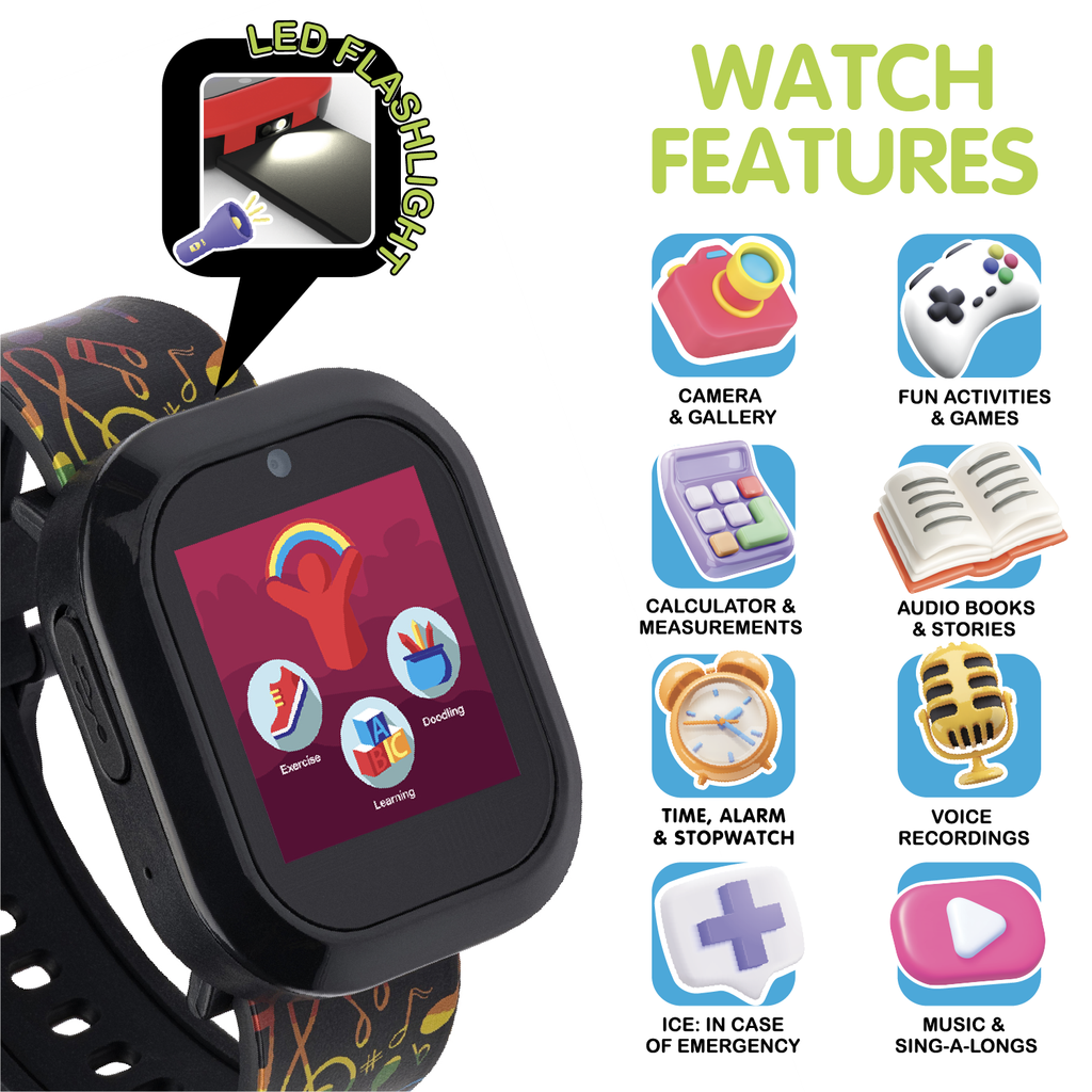 iTech Jr musical notes themed kids silicone strap smartwatch
