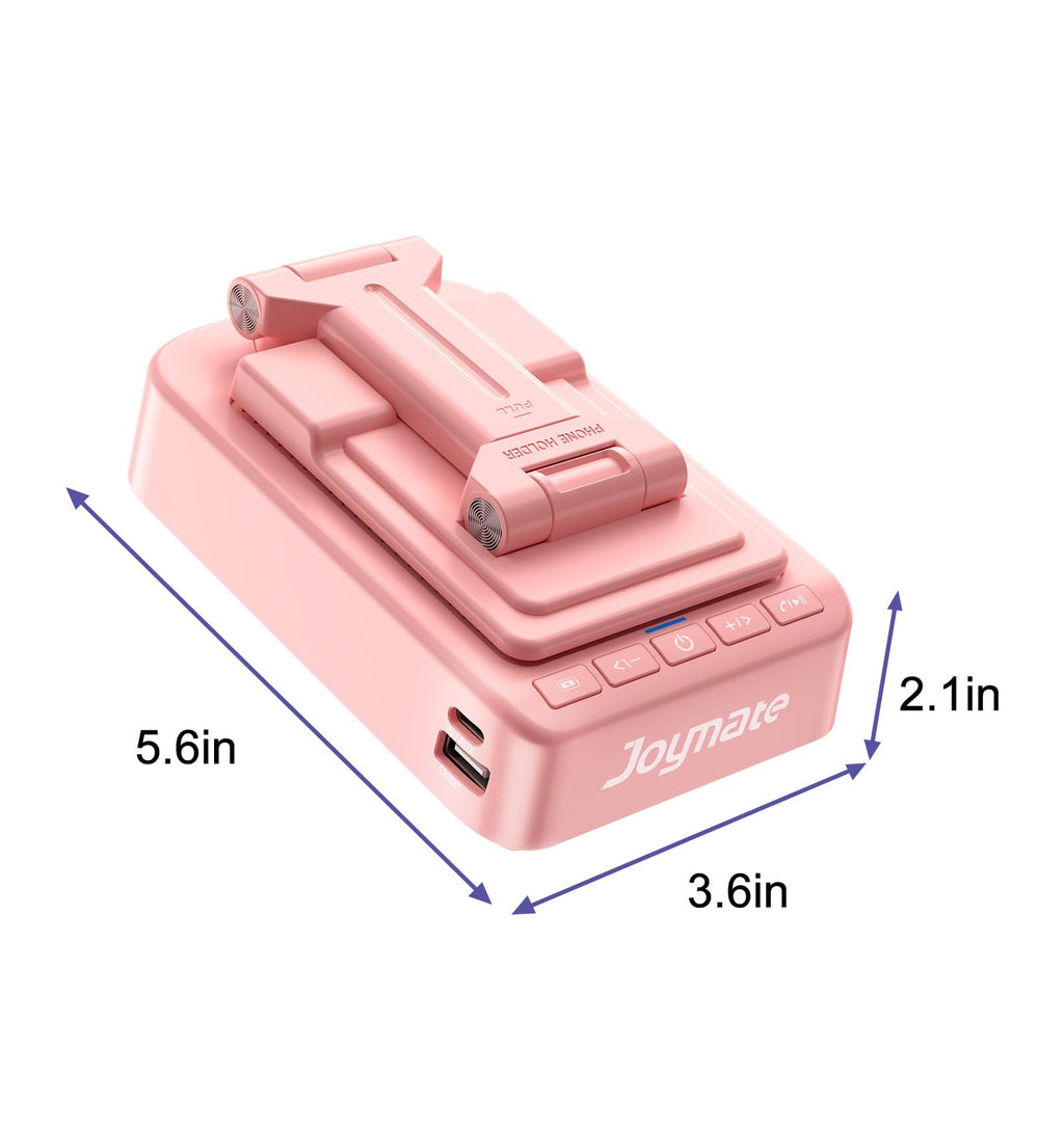 - 3600mAh Battery and Non-slip Design- Our cell phone holder comes with a large capacity battery which serves as a power bank (not wireless charging), and the play time is up to 40h at 50% volume in fully charged state. Plus, remaining power is visible from the battery indicator light. Panel and base are covered with silicone pads which can prevent slipping.