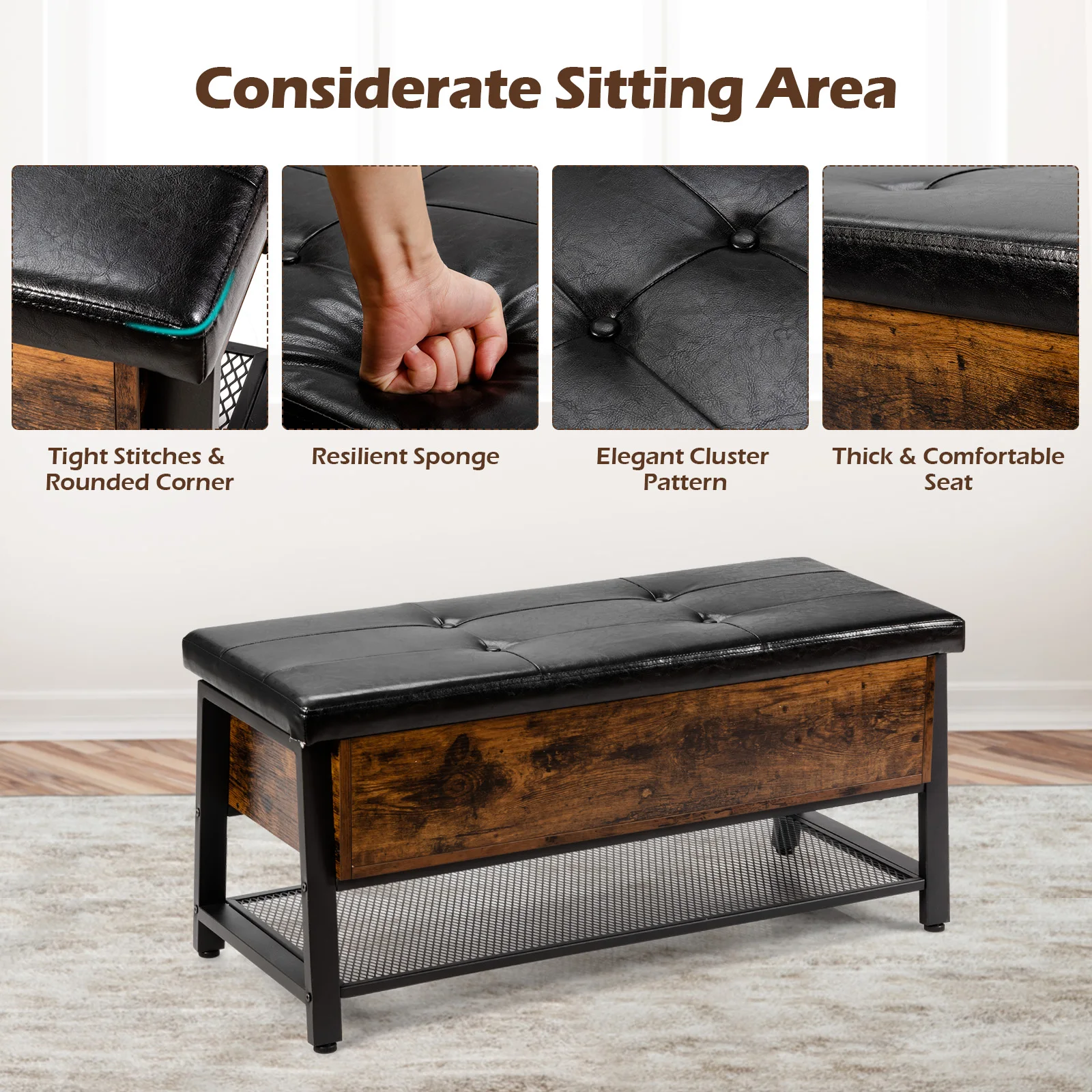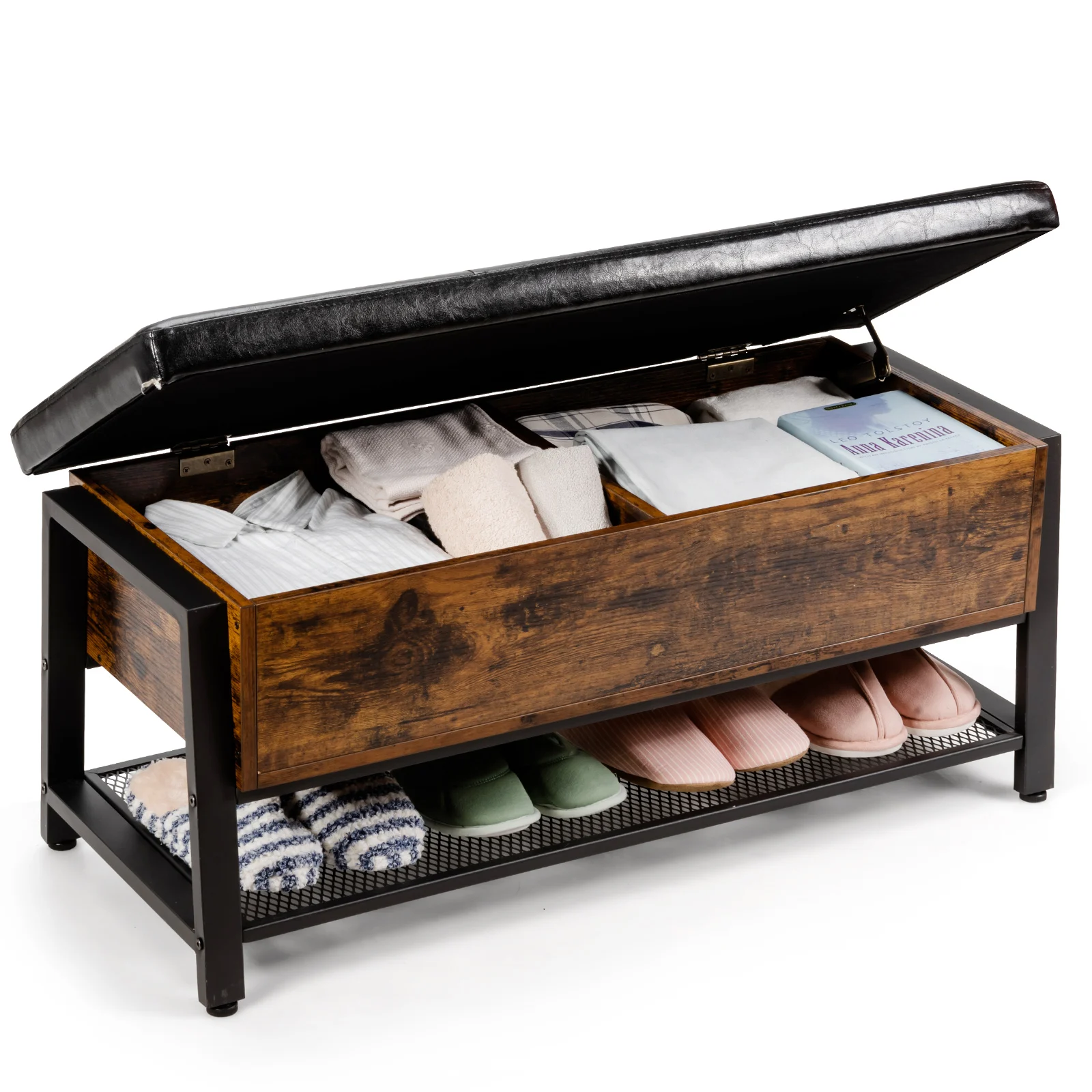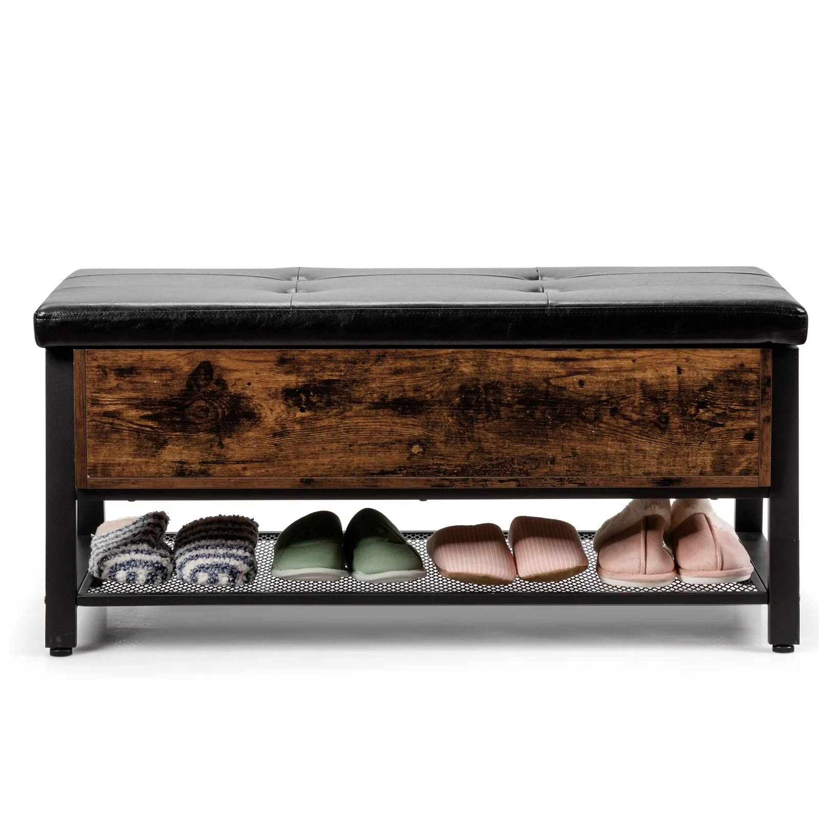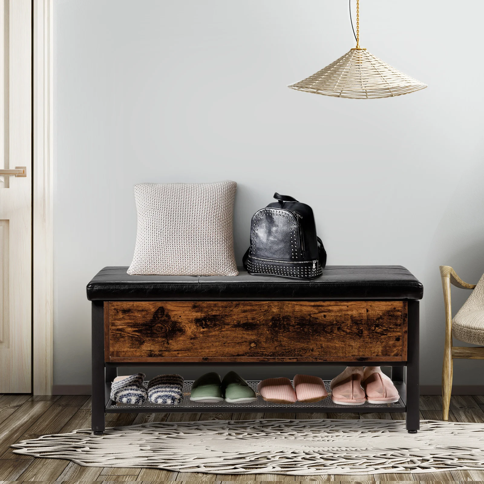 Shoe Bench Padded Bench with Storage Box and Shoe Shelf Rustic Brown