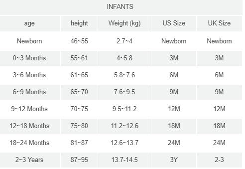 *Each size includes: 1 romper & 1 trousers & 1 headband