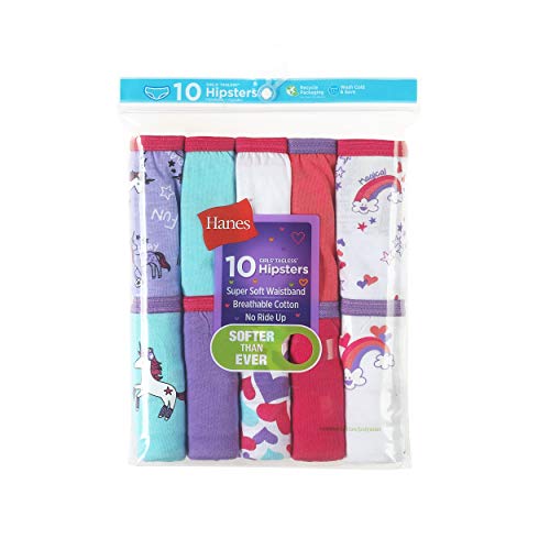 Hanes Girls' Hipster Underwear Pack, Cotton Hipster Panties, Cotton Panties, 10-Pack (Colors/Patterns May Vary)