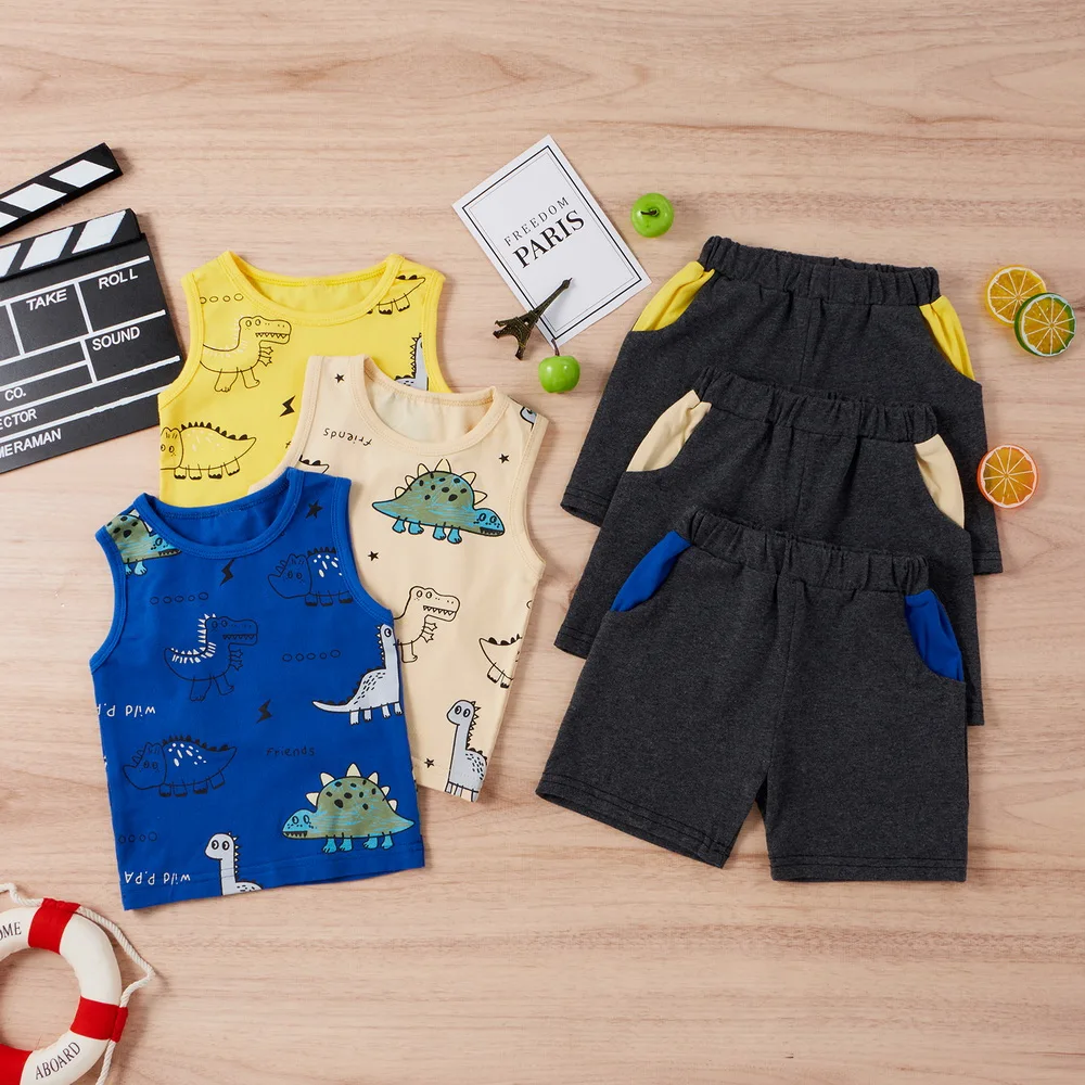 Summer Kids Infant Clothing Sets Baby Boby Toddler Boys Clothes Football Basketball Sports Vest T-shrits Shorts Tracksuit D30