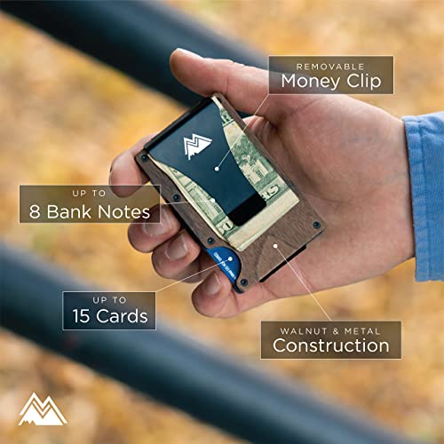 Mountain Voyage Slim Minimalist RFID Blocking Men Wallet - Men Wooden Credit Card Holder with Money Clip - Wallet Mens Slim - Wallets Mens Easily Removable Money & Card - Wallets Men Metal