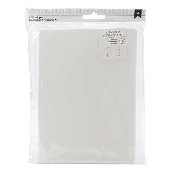 Enhance your correspondence with the American Crafts 25 Count A7 Ivory Envelopes, sized at 5.25" x 7.25"! These high-quality envelopes provide a classic and elegant touch to your invitations, announcements, or greeting cards. Made from premium ivory paper, they offer a smooth texture and sturdy construction, ensuring your mailings arrive in style. Whether for weddings, parties, or everyday use, the American Crafts A7 Ivory Envelopes are the perfect choice for adding a touch of sophistication to your stationery.,American Crafts 25 Count Ivory Envelopes.