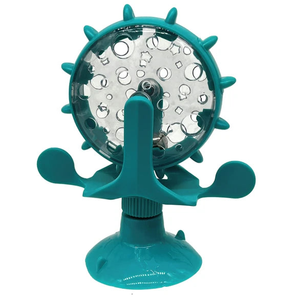 The Suction Cup Treat Dispenser Cat Toy is the perfect blend of play and reward for your feline friend! This innovative cat toy not only engages your cat's instincts but also adds an element of excitement with a built-in treat dispenser. Elevate your cat's play experience with this multifunctional toy designed for endless fun and tasty rewards. The toy is equipped with a reliable suction cup, allowing easy attachment to smooth surfaces like windows, glass doors, or tiled walls. The strong suction ensures stability during play, preventing any unexpected falls and providing a secure environment for your cat to indulge in play and treats. Transform your cat's playtime into a rewarding adventure with our Suction Cup Treat Dispenser Cat Toy. Encourage mental and physical activity while treating your cat to tasty rewards. Measures approximately 6.5" x 5.5". Comes packaged inside a hanging color box.,Suction-Cup Rotating Spinning Cat Toy.