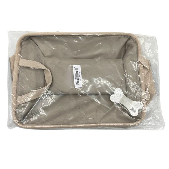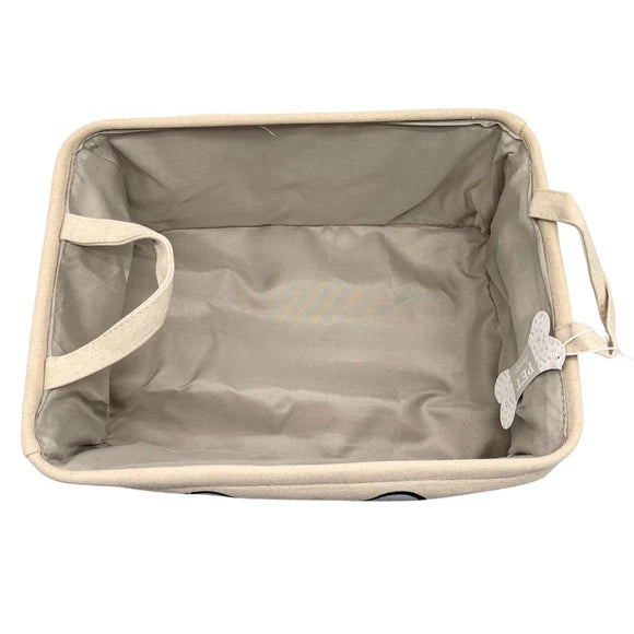 Keep your pet's essentials neat and organized with the Winifred and Lily 16"x12" Khaki Two Tone Pet Storage Bin with White Bone Embroidery, a stylish and functional solution for every pet owner. Designed to hold a variety of items such as dry treats, leashes, collars, toys, grooming supplies, blankets, and pet outfits, this versatile bin helps keep your space clutter-free. Its collapsible design allows for convenient storage when not in use, making it perfect for small spaces or travel. Each bin comes packaged in a protective plastic bag with a UPC label, and includes a charming branded tag. Ideal for any pet-friendly home, this storage bin combines practical organization with a touch of personality.,Winifred and Lily 16"x12" Khaki Two Tone Pet Storage Bin with White Bone Embroidery.