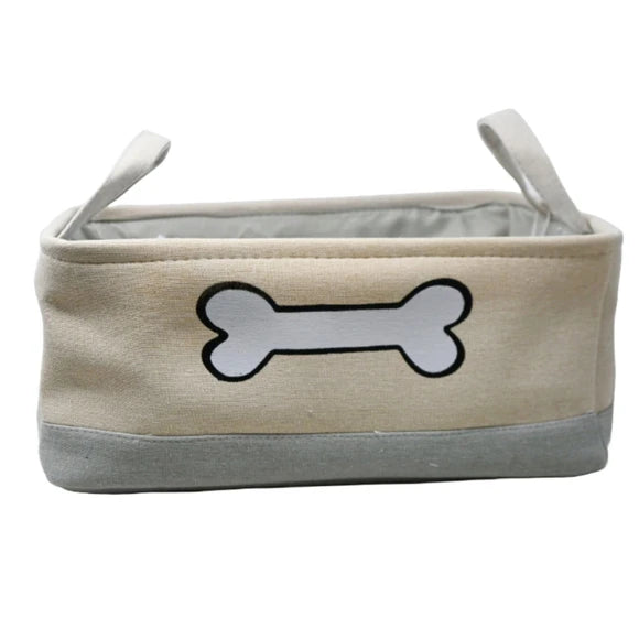 Winifred and Lily 16"x12" Khaki Two Tone Pet Storage Bin with White Bone Embroidery
