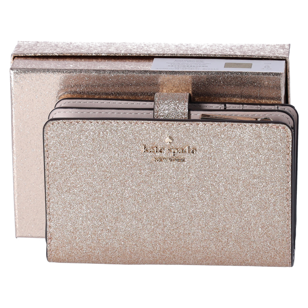 Kate Spade Glimmer Metallic Medium Compact Bifold Wallet Glittering Gold