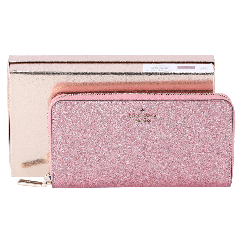 Kate Spade Shimmy Tinsel Glitter Boxed Large Continental Wallet Mitten Pink