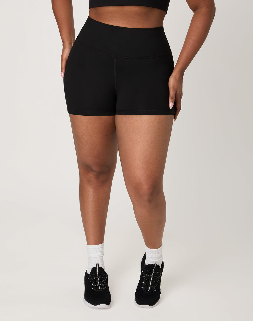Velvety-soft and engineered to keep you cool, Hanes Moves™ women's bike shorts are ready to ride when you are. The 4-way stretch fabric ensures a made-to-move fit and the flexibility you need to tackle any workout.Crafted from soft and stretchy peached interlock fabric, these shorts are engineered to wick moisture from your skin - keeping you cool as your activity level heats up. The high-waisted design is functional and sleek with an interior pocket and an athletic, close-to-body fit. Finished with smooth flatlock seams, these women's shorts are all about feeling good, staying comfortable, and moving without any limits. Hanes Moves. Ready for Anything.