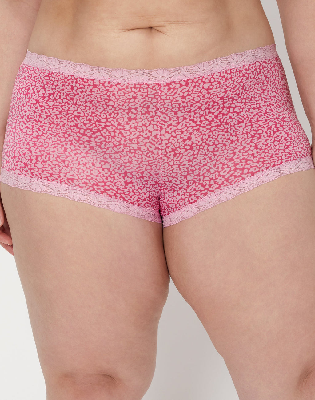 Maidenform One Fab Fit Microfiber Boyshort Underwear With Lace Destiny Pink Spotted Animal Print