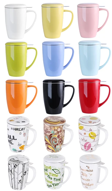 450ML Porcelain Tea Mug Cup with Lid and Stainless Steel Infuser Filter