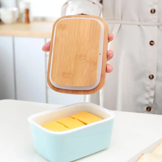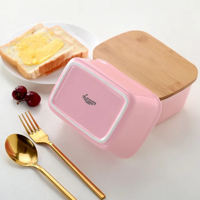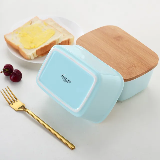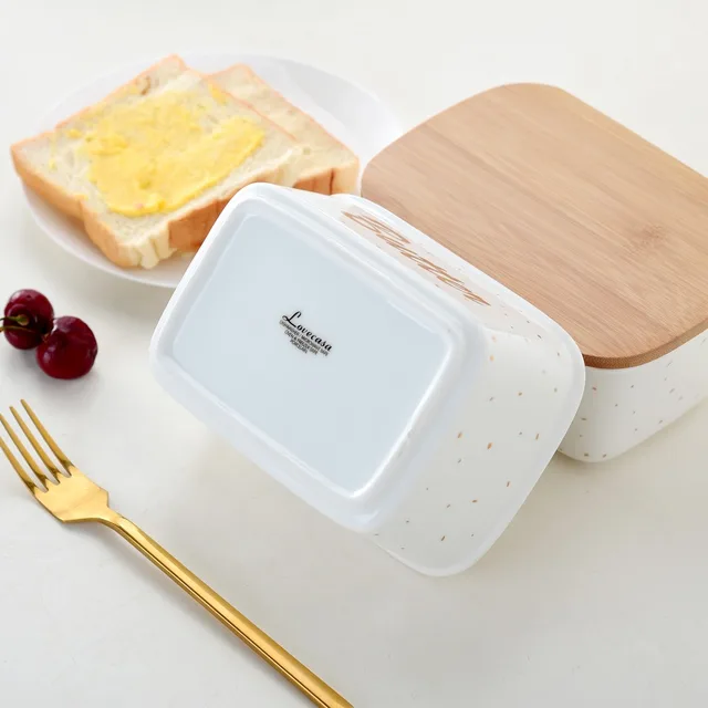 500ML Porcelain Sealing Butter Box Ceramic w/ Wooden Bamboo Lid