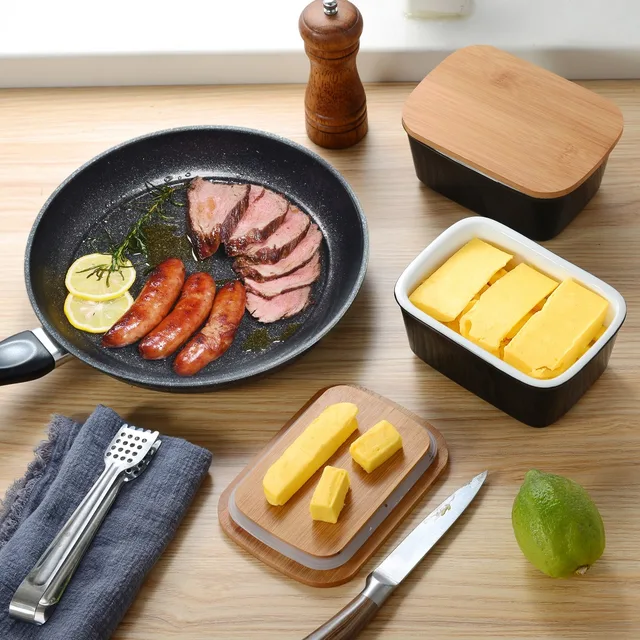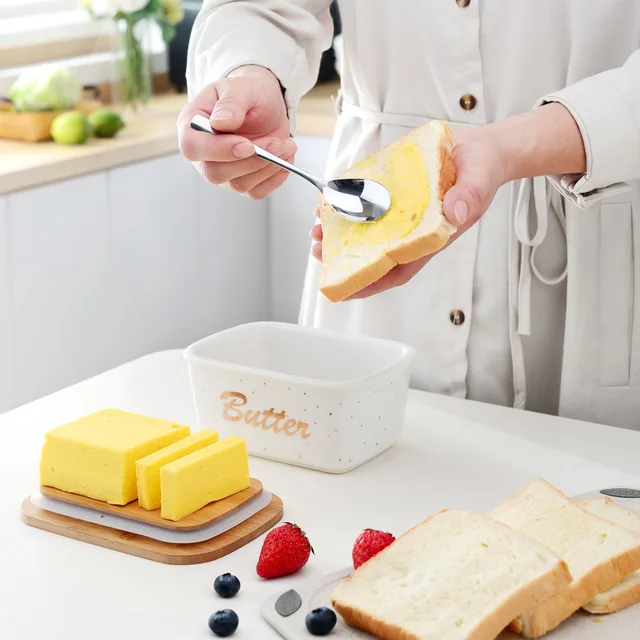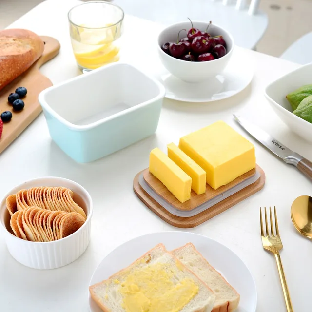 ✅ Leak-proof Design - The white butter dishes makes bamboo lid to stick on butter container strongly to avoid butter leaking out