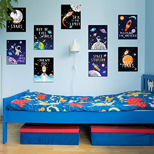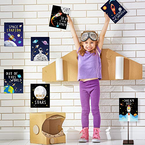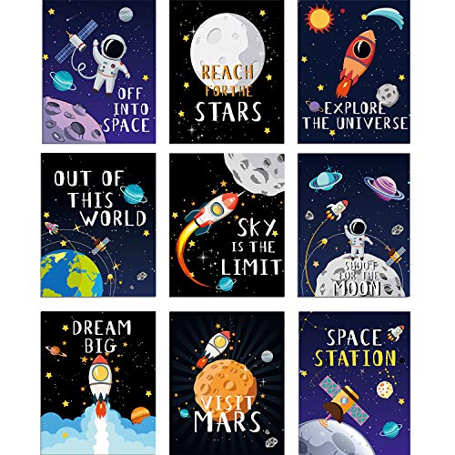 Blulu 9 Pieces Outer Space Décor Kids Nursery Bedroom Space Posters Decor, 8 x 10 Inch, Cute Inspirational Wall Art Decoration for Boys and Girls Playroom Bedroom Nursery Room Décor