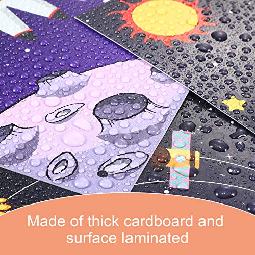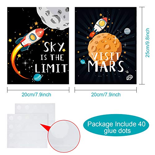 - Package includes: 9 pieces outer space decoration signs with 40 glue points dots; The space sign cutouts are made of sturdy card stock with surface laminated for a durable and long lasting use, and each card is about 8 x 10 inches (W x H)