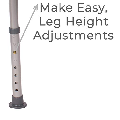 - ADJUSTABLE SEAT HEIGHT makes it easy to level the bath bench to the perfect height, no tools required. The bath seat (or shower seat) disassembles quickly and easily for storage or travel so you'll never have to leave your comfort at home.