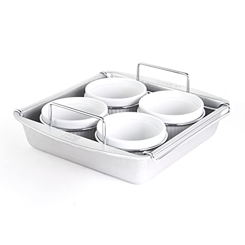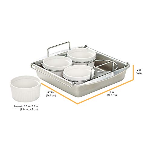 - SET INCLUDES EVERYTHING YOU NEED: This set includes four 6-ounce porcelain ramekins, 8" square pan, and interior rack that keeps ramekins in place.