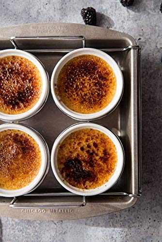 Details: Crème Brulee, a decadent treat usually reserved for fine restaurant dining can now be easily and safely prepared at home with this clever set from Chicago Metallic. The set includes an 8-inch square aluminized steel baking pan, chrome wire rack and four. Oven safe to 450°F / 232°C; not intended to be used under the broiler. Sharp-edged utensils and knives should not be used. At Chicago Metallic, we believe that serious baking requires serious bakeware. That’s why we’ve been crafting innovative equipment, for professionals and serious home bakers, for over 100 years. We’ve built a global reputation one kitchen at a time. People know our products are built for durability and can be depended on year after year. We’re proud to offer three distinct lines of premium bakeware plus stylish, innovative specialty bakeware and baking essentials. The Chicago Metallic Professional line of bakeware makes cooking and baking a delight. The non-stick surface easily releases each recipe and makes clean-up effortless. It’s the preferred choice of bakers who understand quality and design, but also want professional-grade durability.