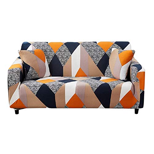 HOTNIU Stretch Sofa Covers Printed Couch Cover Sofa Slipcovers for 3 Cushion Couches Elastic Universal Furniture Protector with 1 Pillowcase (Large, Grey Geometry)