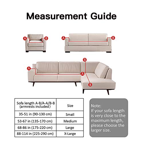 - ✔DIMENSIONS & ADDITIONAL GIFTS: As shown in the size chart, our S/M/L/XL magic stretch sofa covers fit: Armchair wide from 35" - 51"; Loveseat wide from 53" to 67"; 3 Seater Sofa from 68" to 86"; 4 Seater Sofa from 88" to 114". In order to get a better shopping experience for buyers, every sofa cover includes 1 free pillowcase + anti-slip foams in the package.
