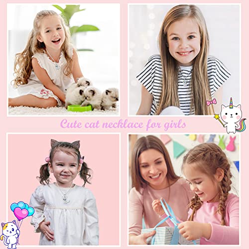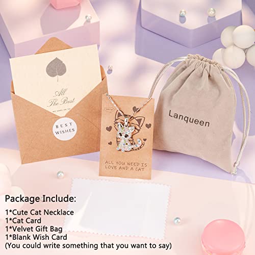 Lanqueen Kitty Cat Pendant Necklace Jewelry for Girls Cat Gifts for Cat Lover Niece Daughter Granddaughter Loved Necklace 18+2.3 inch Chain,Color