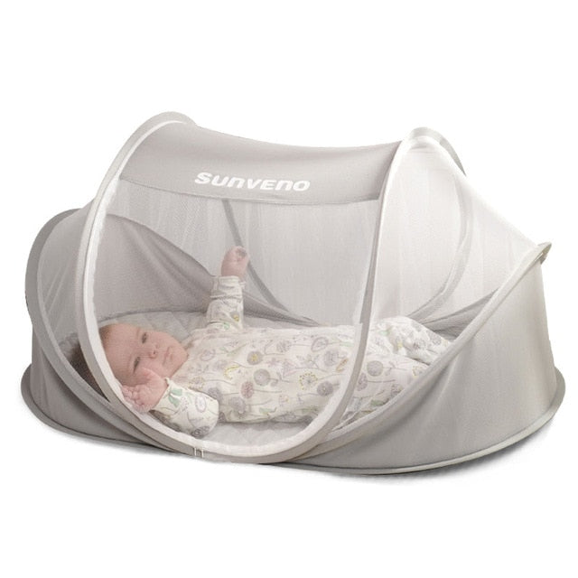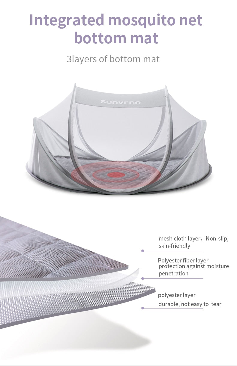 Sunveno Baby Pop-Up Mosquito-Net. This convenient accessory can be used indoors or outdoors to shield the baby from insects such as mosquito, bedbugs or no-see-ums. The Sunveno mosquito net opens instantly into shape with no assembly required. It is lightweight and portable, so you can easily take it with you.