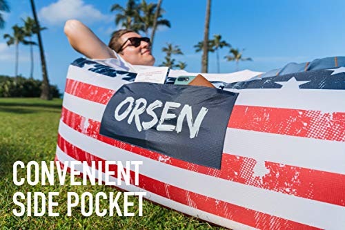 - 🏔️ EASY TO INFLATE DESIGN. No pump required for our ORSEN Inflatable Lounger. Just a few scoops of air and this inflatable couch is ready to hangout in. Folding to 12"x 8"x 4"and the weight is only 3lbs. Fitting in its own carrying bag with shoulder strap, this ORSEN air sofa couch is ready to be taken anywhere with you. Use it as a pool float or outdoor chair and replace that cumbersome camping hammock, picnic blanket, blow up sofa or air bed
