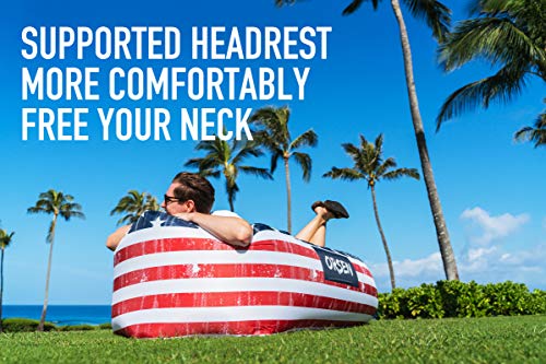 - 🏕️UNIQUE HEADREST DESIGN. Our Unique Ergonomic Neck Pillow headrest of air lounger allows you to relax with maximum comfort. Its versatility makes it one of the ideal camping accessories for your vacation, RV traveling or boating. It is also the best beach chair to let people indulge in sun and sand