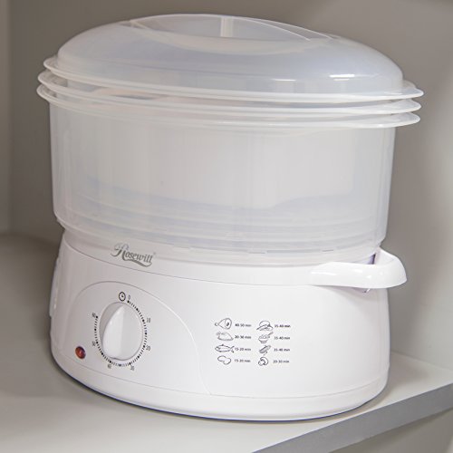 Details: Rosewill RHST-15001 Steamer could steam a variety of foods at the same time, in order to serve a complete health conscious meal. Just fill the Steamer with water, place one to three transparent baskets filled with food atop the base, and then set the cooking timer according to the instruction beside the timer. No worry about the water level because of the safety auto-off and double external see-through water-fill inlets on both sides for easy water refill. Since food cooks faster in the lower basket, always place one basket filled with food which takes a longer time to cook near the base. BPA-free basket is environmentally friendly and provides healthy cook