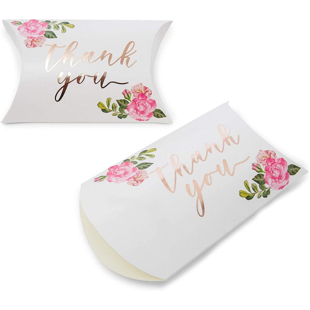 Wedding Pillow Boxes, Rose Gold Foil Thank You Party Favors (5.15 x 1.35 In, 100 Pack)